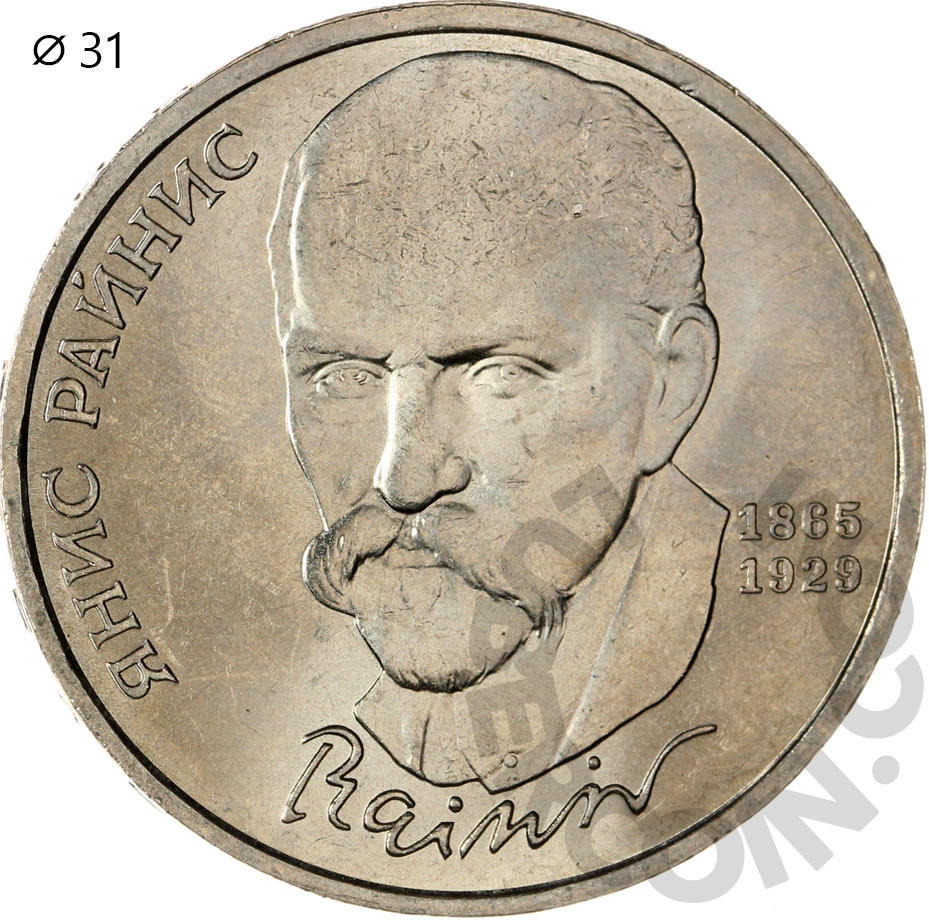 1 рубль 1990 Янис Райнис. 125 лет со дня рождения UNC