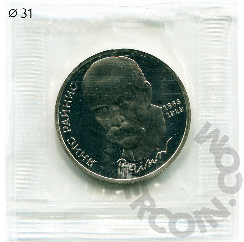 1 рубль 1990 Янис Райнис. 125 лет со дня рождения PROOF