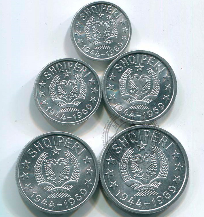Албания набор монет 5, 10, 20, 50 киндарок, 1 лей 1969 Независимость (5 монет) UNC