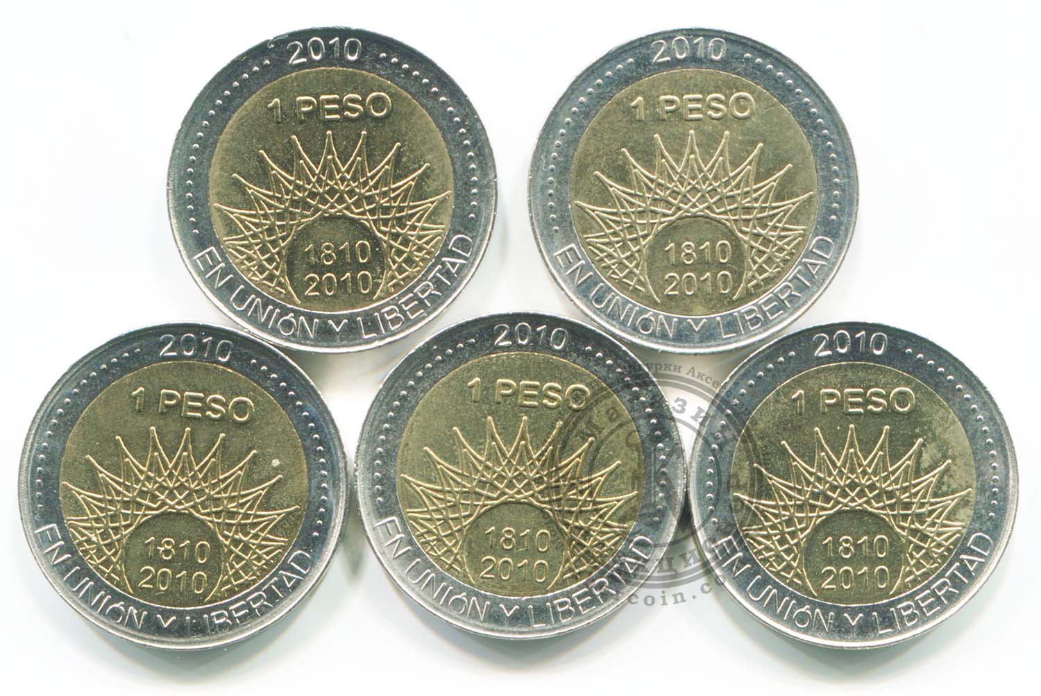 Аргентина набор монет 1 песо 2010 (5 монет)
