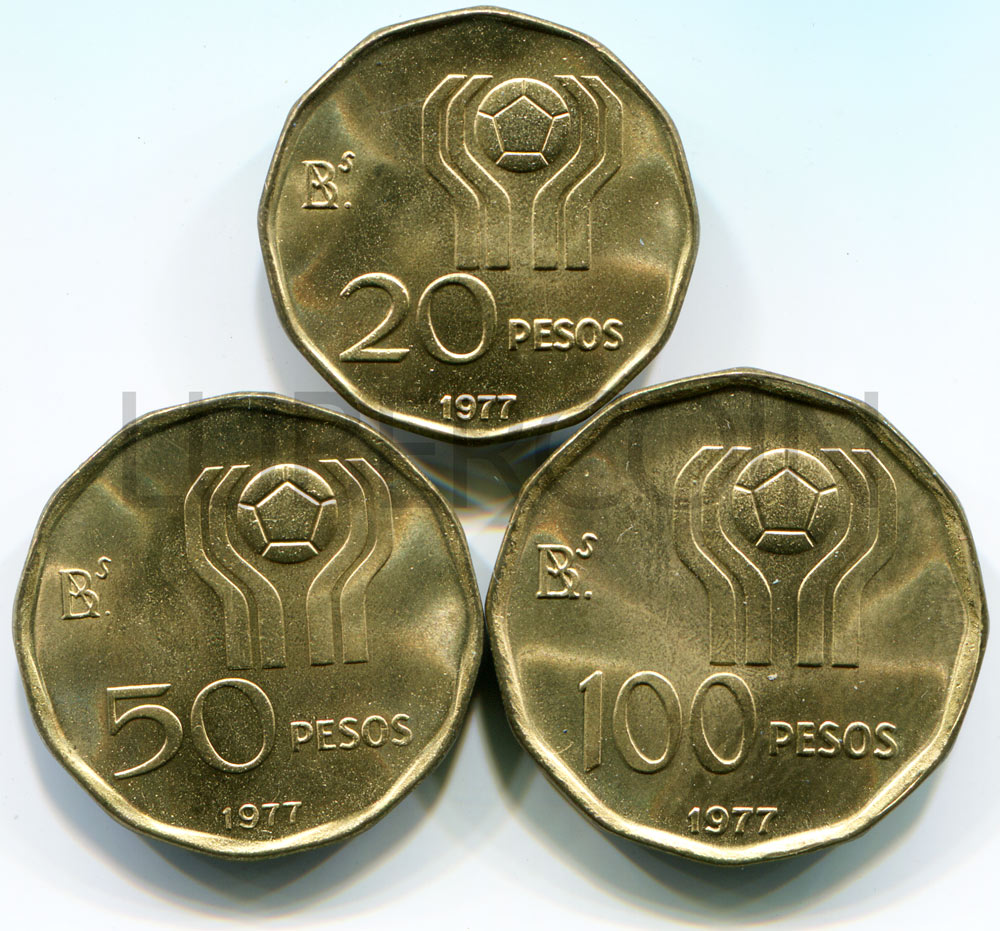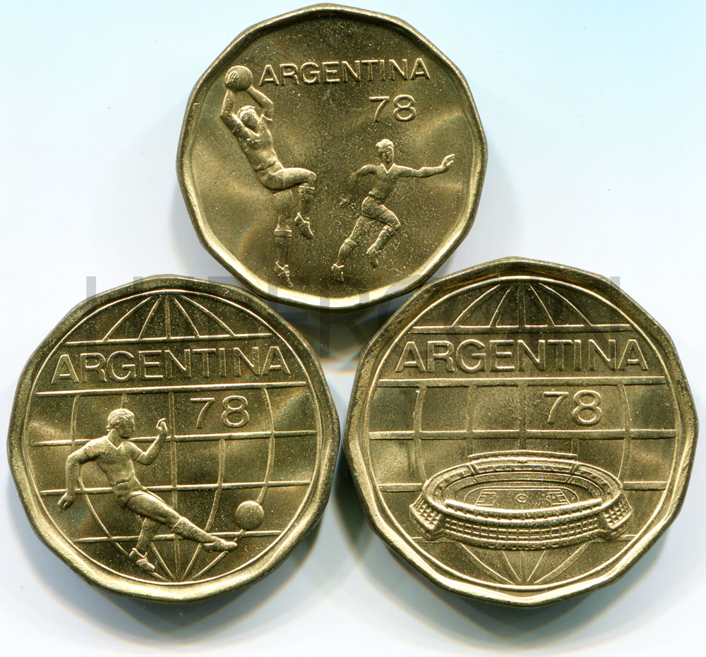 Аргентина набор монет 20, 50, 100 песо 1978 Чемпионат мира по футболу 1978 (3 монеты) UNC