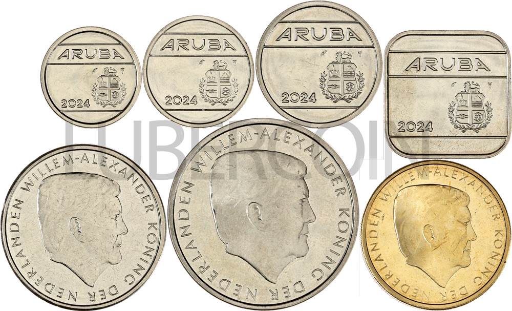 Аруба набор монет 5, 10, 25, 50 центов, 1, 2,5 и 5 флоринов Король Виллем-Александр (7 монет) UNC