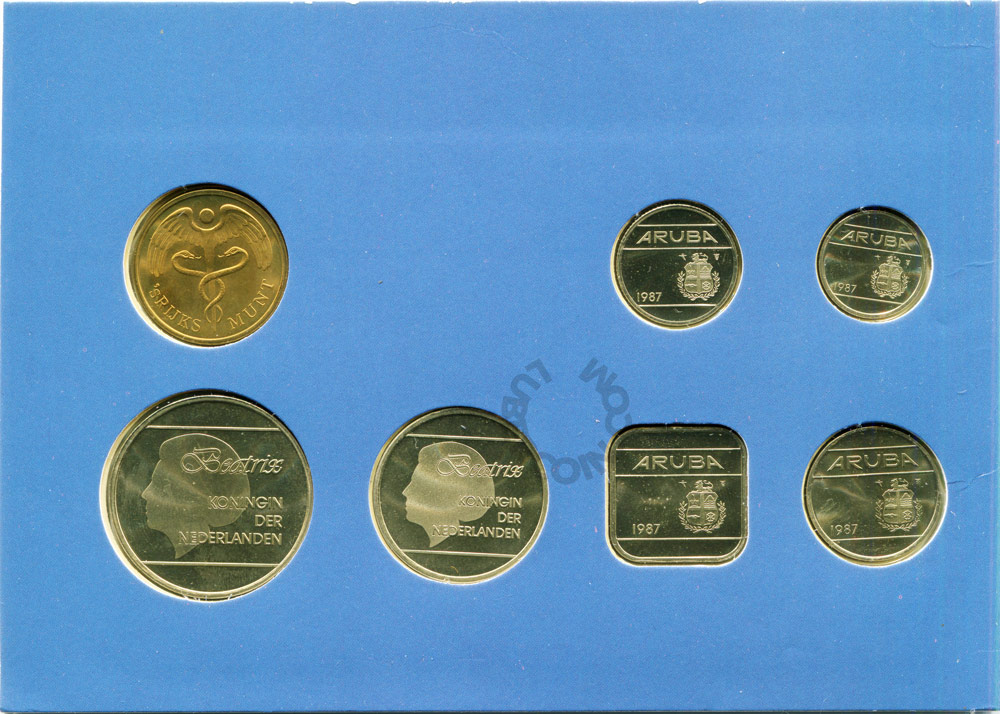 Аруба набор монет 5, 10, 25, 50 центов, 1, 2½, флорина 1987 (6 монет + жетон) UNC