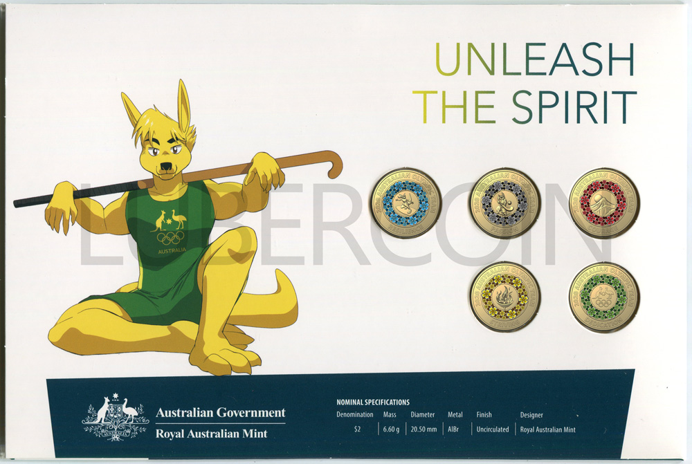 Австралия набор монет 2 доллара 2020 Летние Олимпийские игры 2020 в Токио (5 монет в буклете) UNC