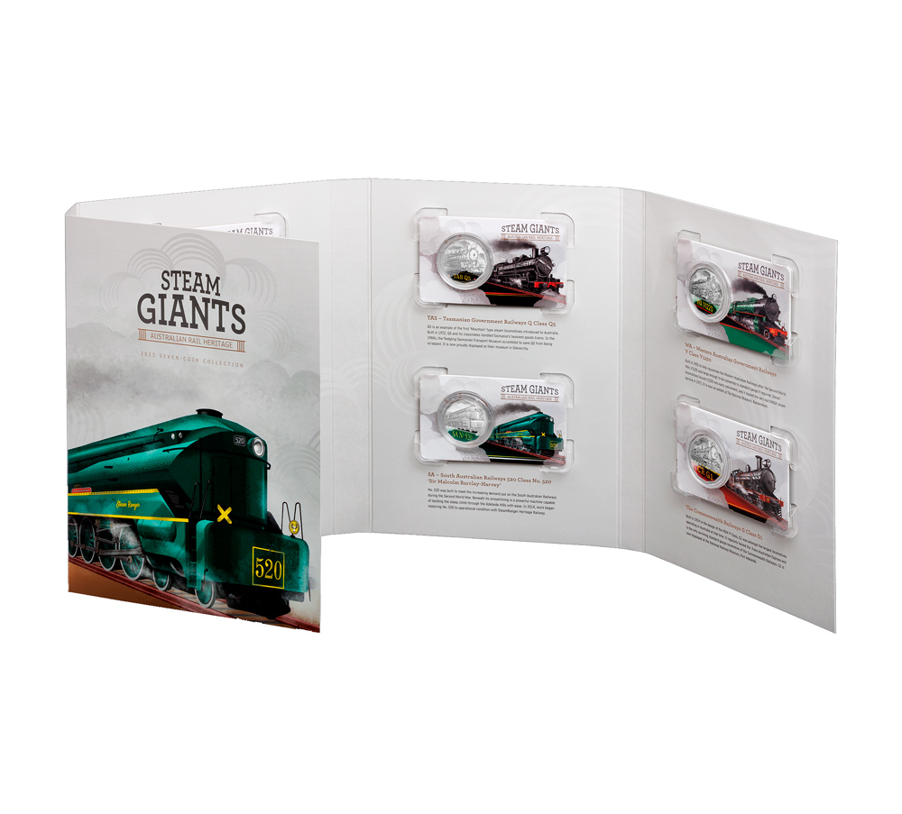Австралия набор монет 50 центов 2025 Паровозы (7 монет в коинкартах в оригинальном альбоме) UNC