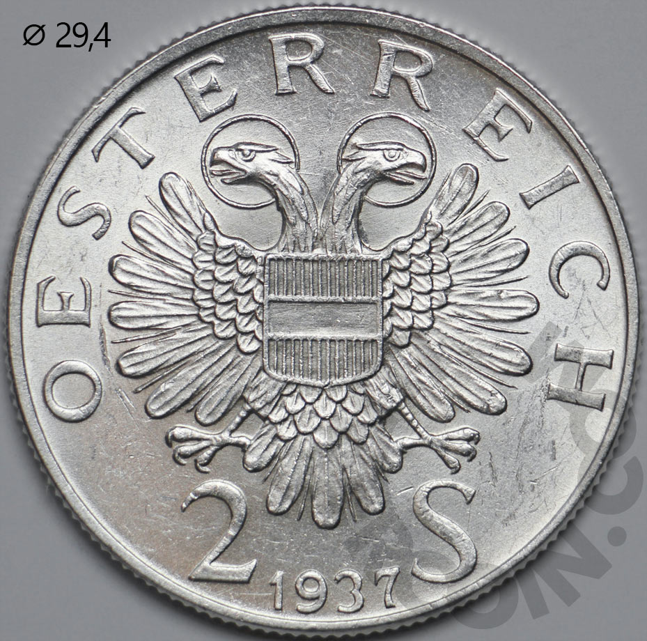 Австрия 2 шиллинга 1937 Карлскирхе (Церковь Святого Карла). 100 лет со дня строительства (00046884)