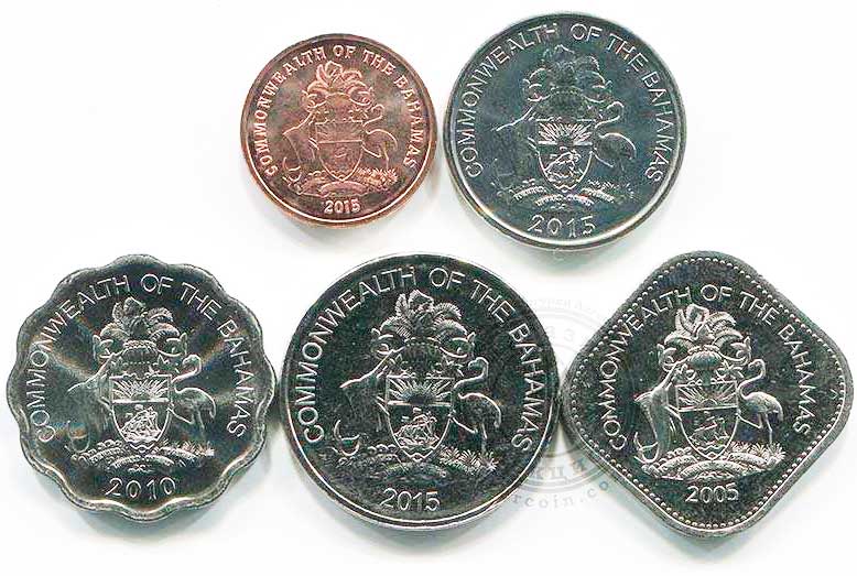 В наборе 5 монет Багамских островов.