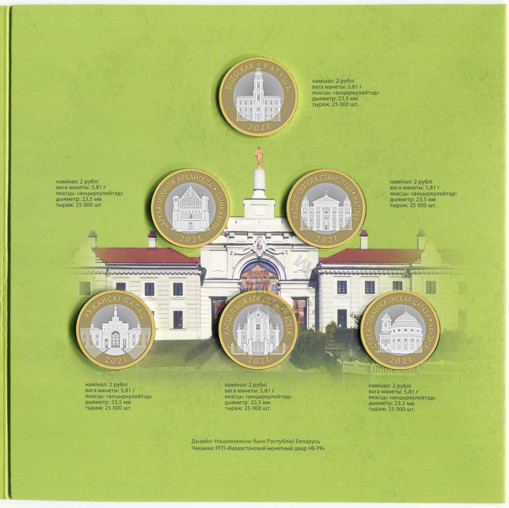 Белоруссия набор монет 2 рубля 2021 Архитектурное наследие Белоруссии (6 монет) UNC