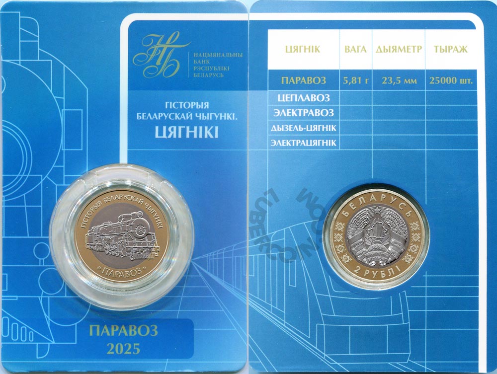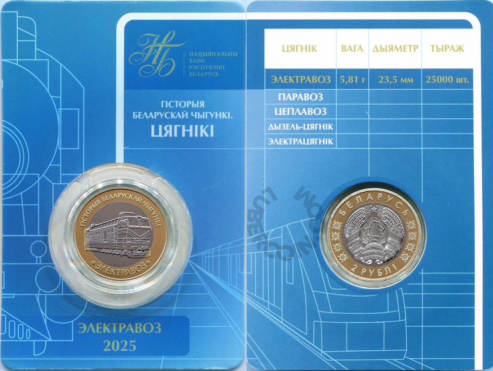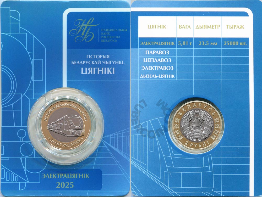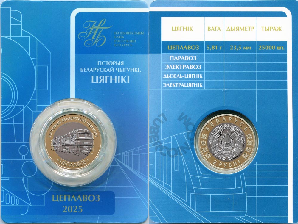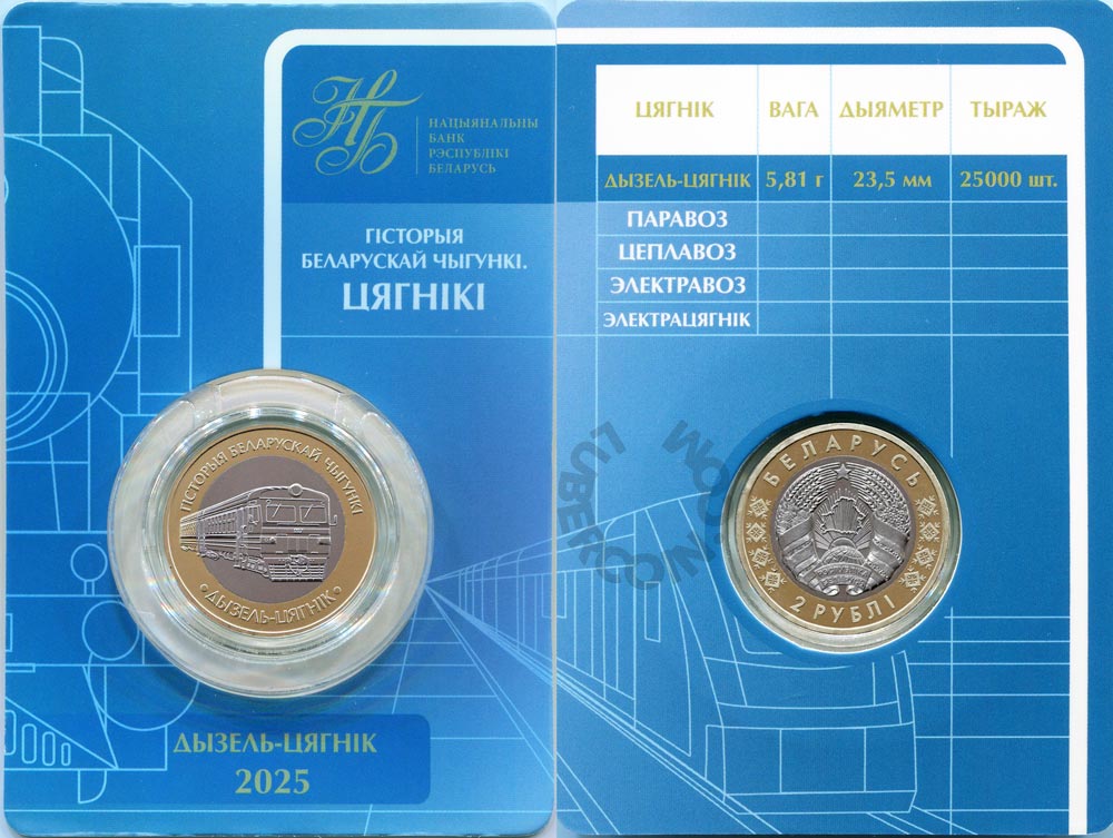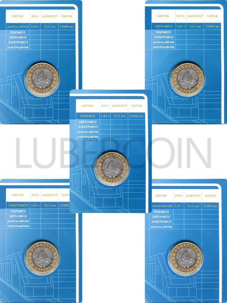 Белоруссия набор монет 2 рубля 2025 История Белорусской железной дороги (5 монет) UNC