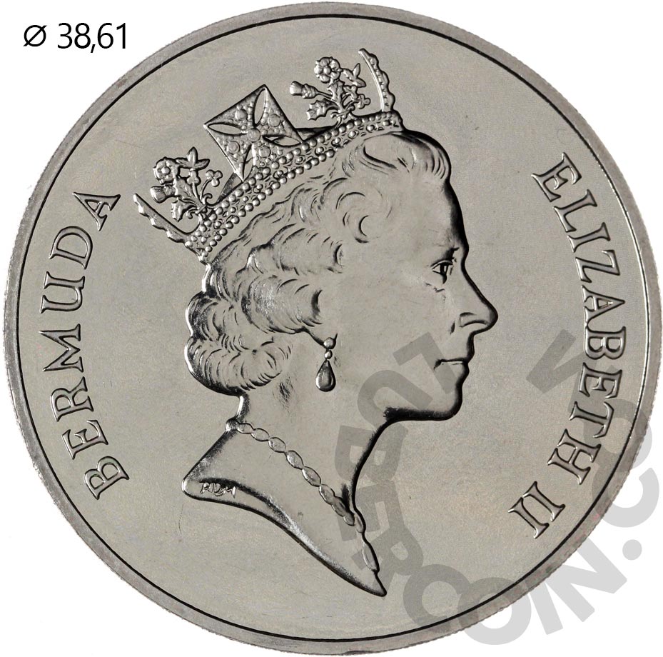 Бермудские острова 1 доллар 1989 Данаида монарх / Бабочка UNC (Патина)