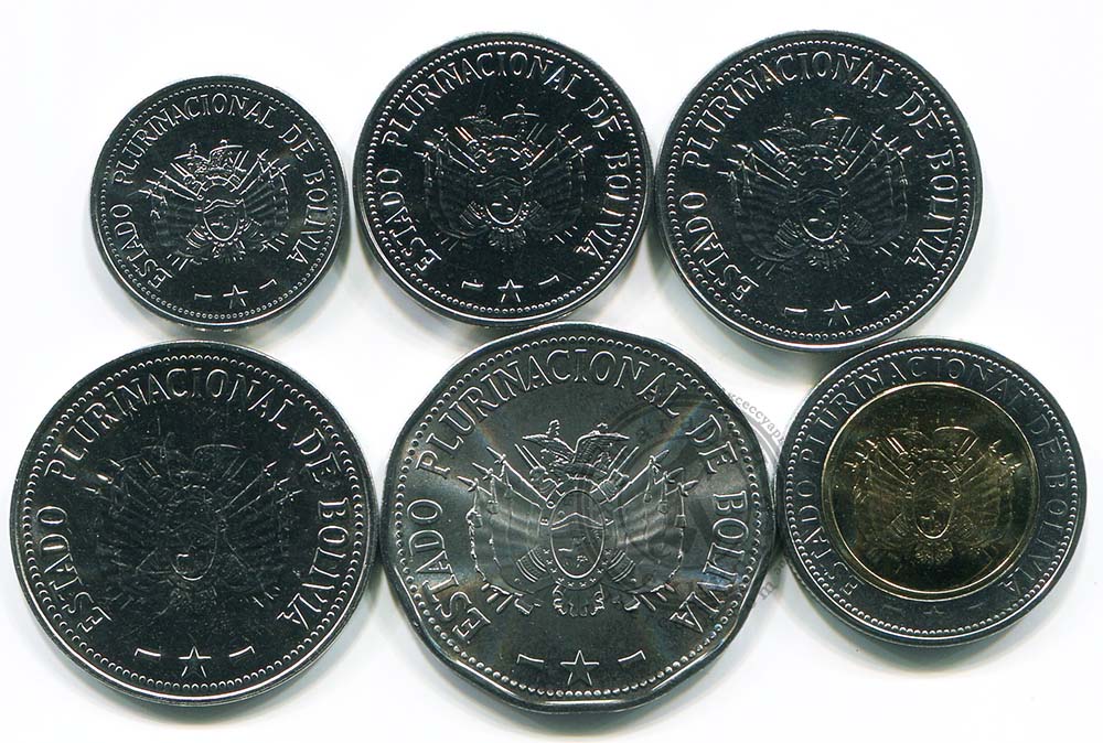 Боливия набор монет 10, 20, 50 сентаво, 1, 2, 5 боливиано (6 монет) UNC
