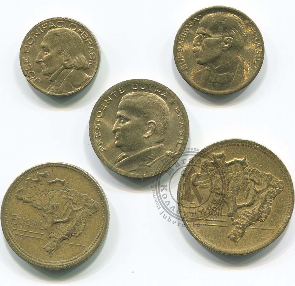 Бразилия набор монет 10, 20, 50 сентаво, 1, 2 крузейро (5 монет)