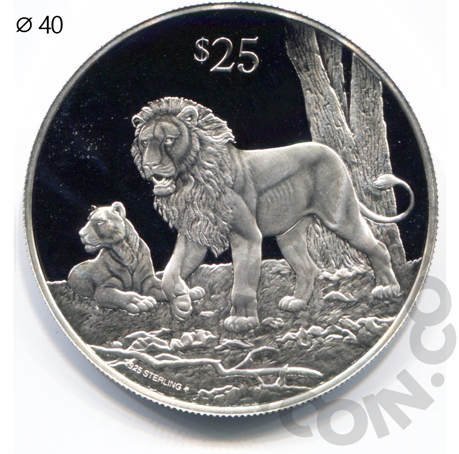 Британские Виргинские острова 25 долларов 1993 Вымирающие виды — Лев (00047188)
