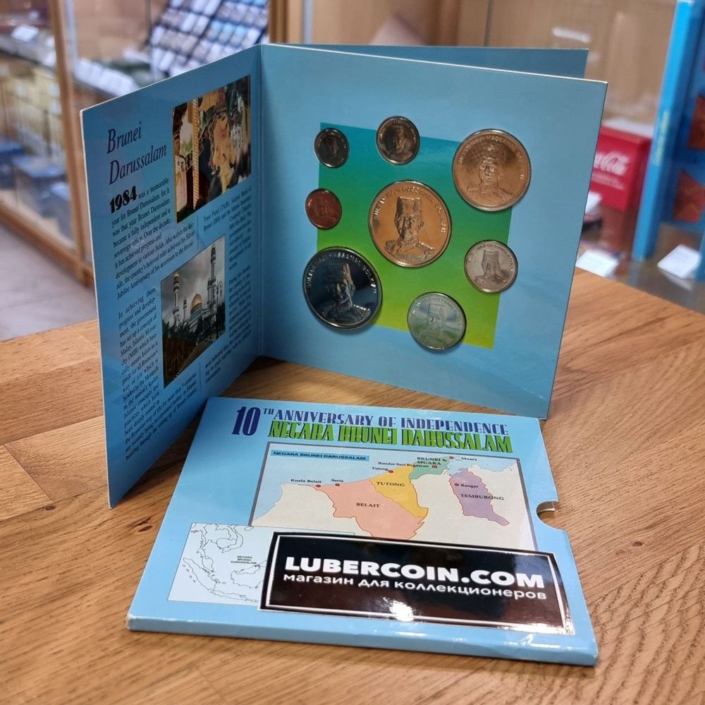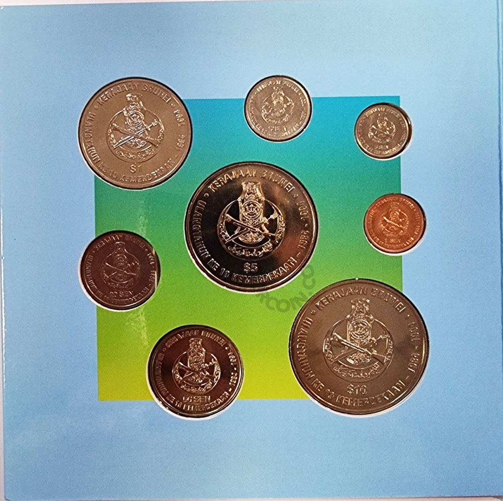 Бруней набор монет 1, 5, 10, 20, 50 сен, 1, 5, 10 долларов 1994 Независимость. 10 лет (8 монет) UNC