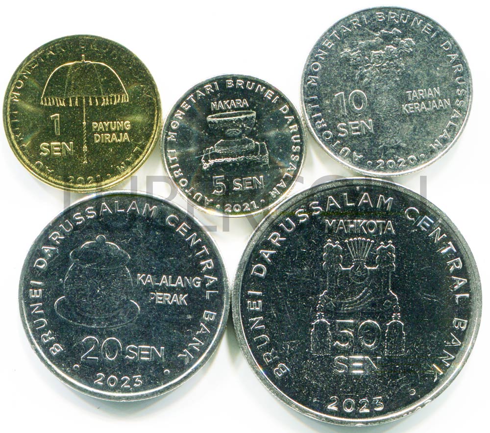 Бруней набор монет 1, 5, 10, 20, 50 сен 2020—2023 (5 монет) UNC