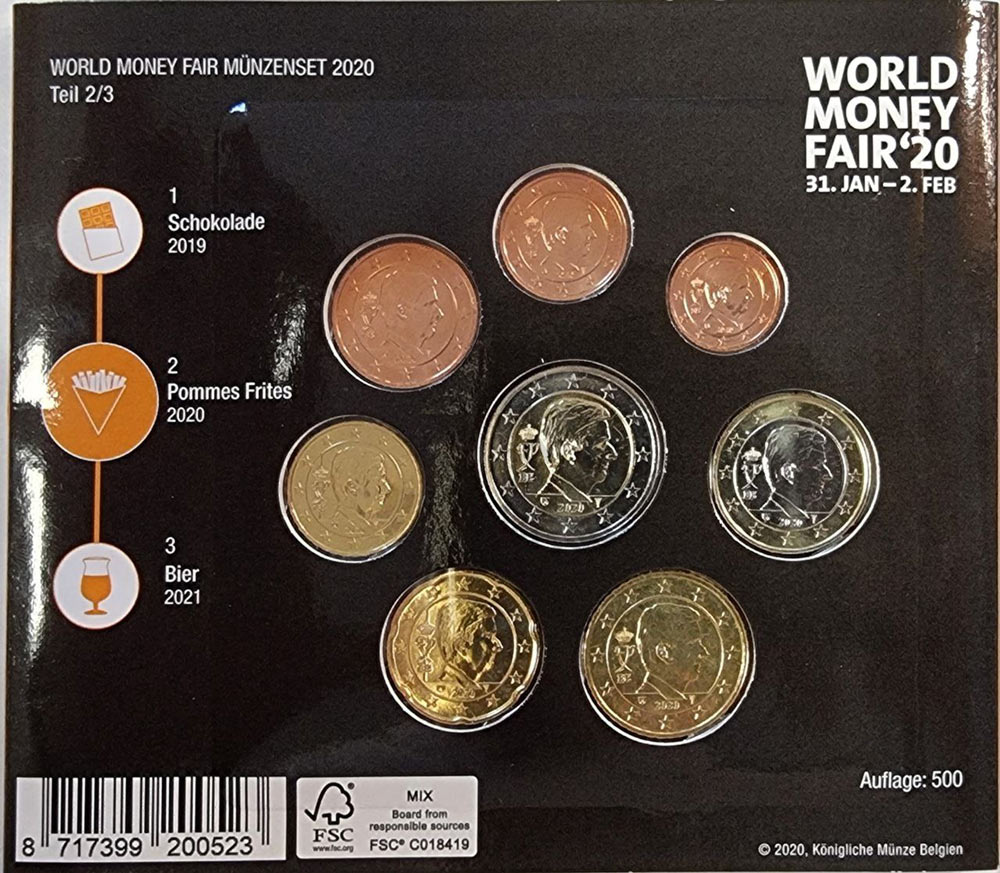 Евро набор Бельгия 2020 (8 монет в буклете (Картошка) для выставки «World Money Fair». Тираж 500шт.)