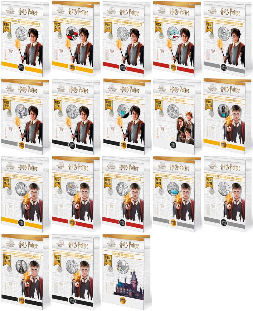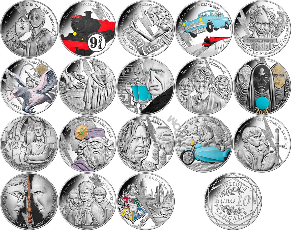 Франция набор монет 10 евро 2021 Гарри Поттер (18 монет в тематических буклетах) UNC