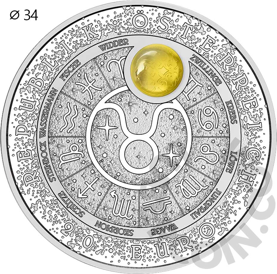 Австрия 20 евро 2026 Телец PROOF