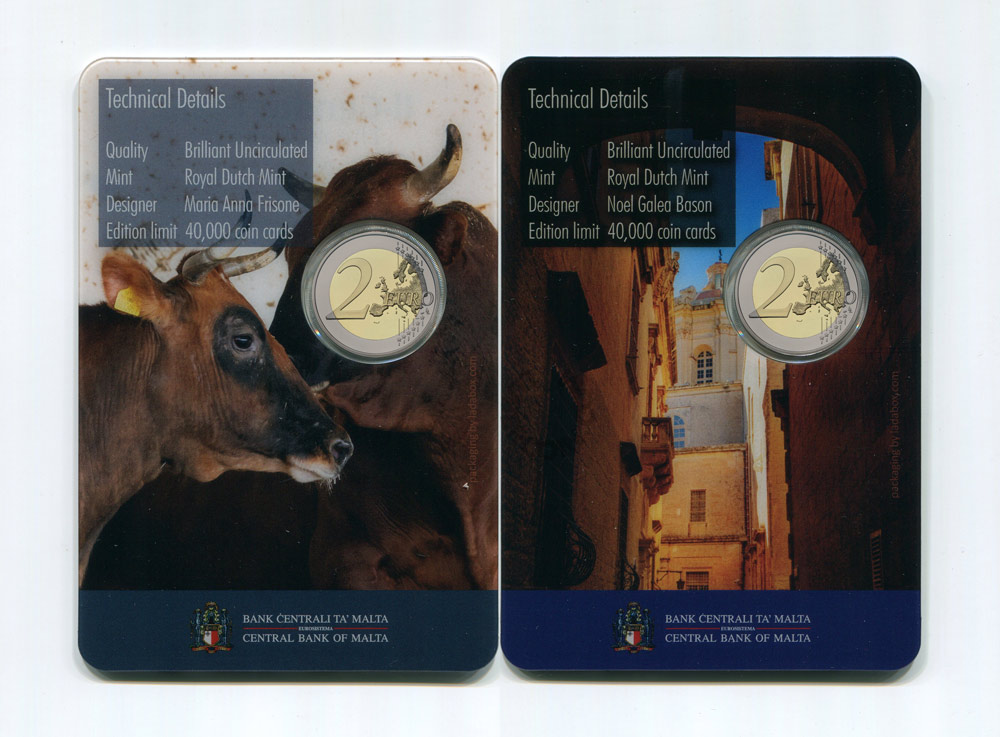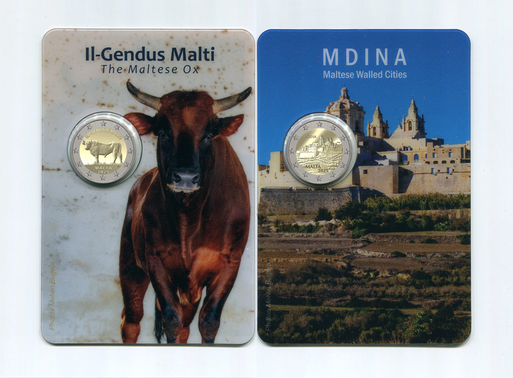 Мальта 2 евро 2025 Бык и Стены города Мдина (2 монеты в буклетах) UNC