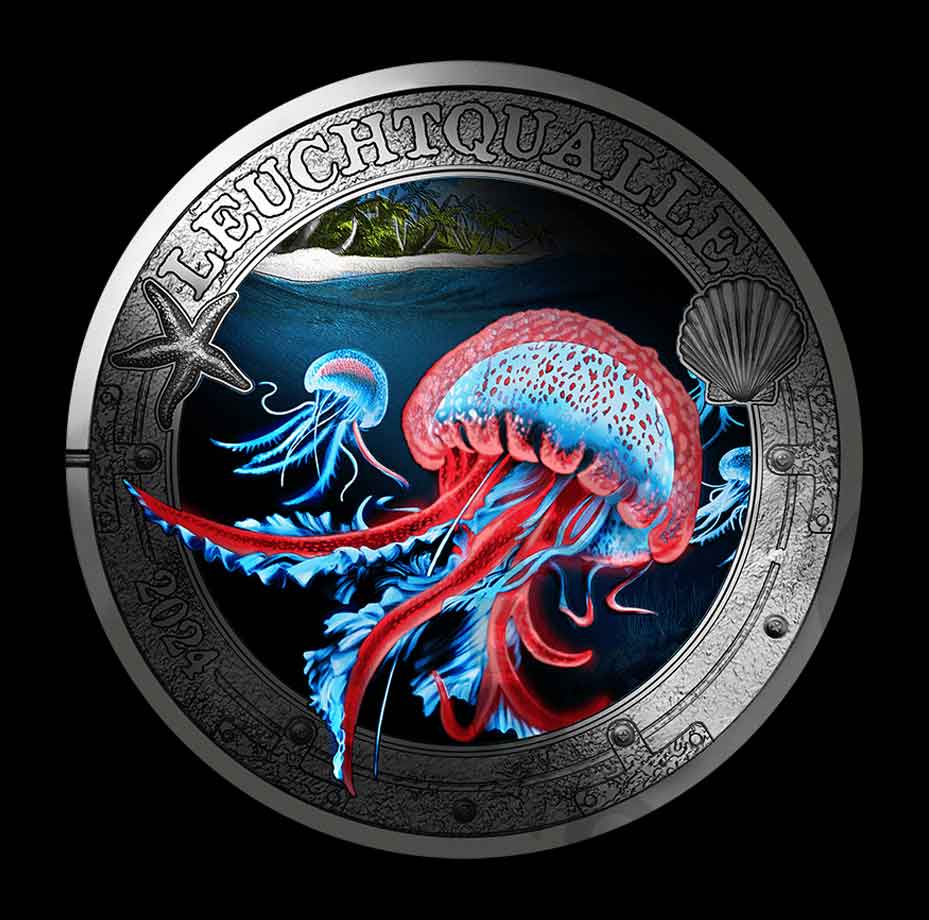 «Медуза Пелагия» — шестая монета австрийской серии «Светящийся подводный мир».