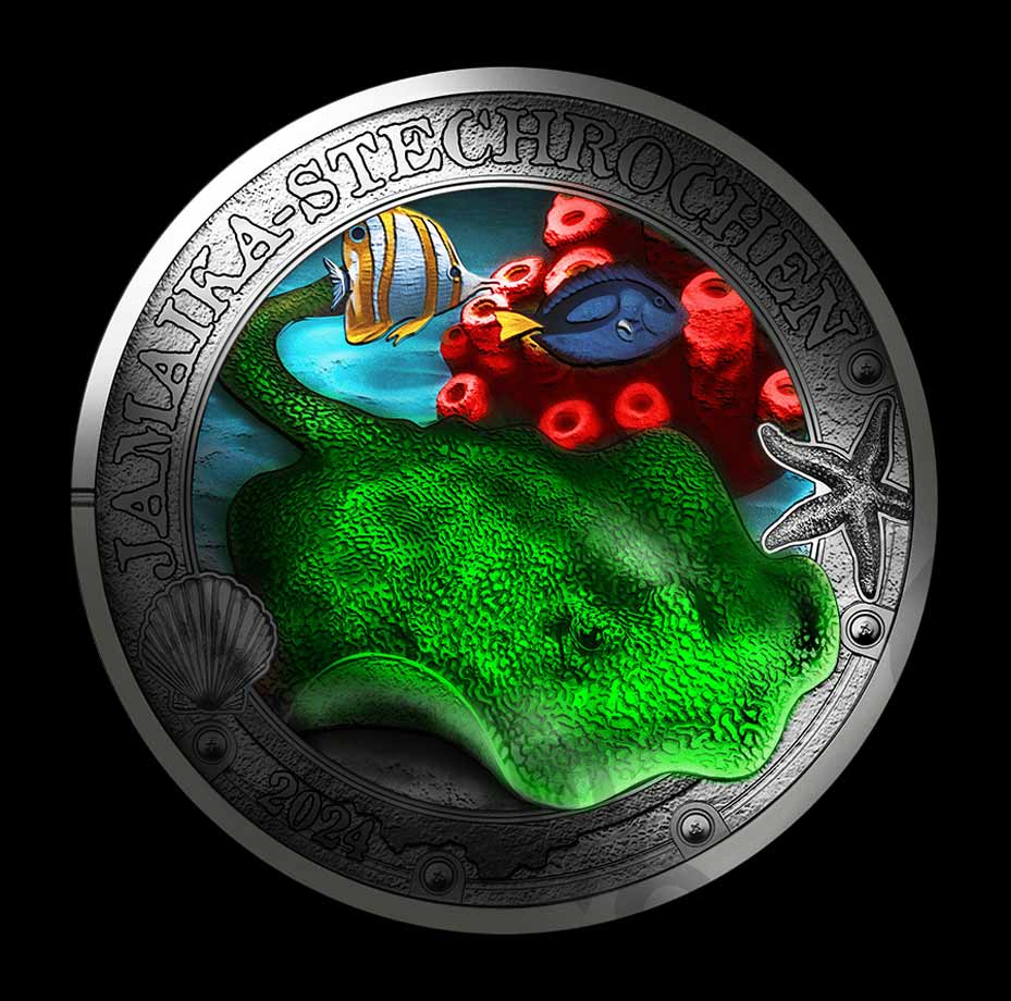 «Жёлтый скат» — девятая монета австрийской серии «Светящийся подводный мир».
