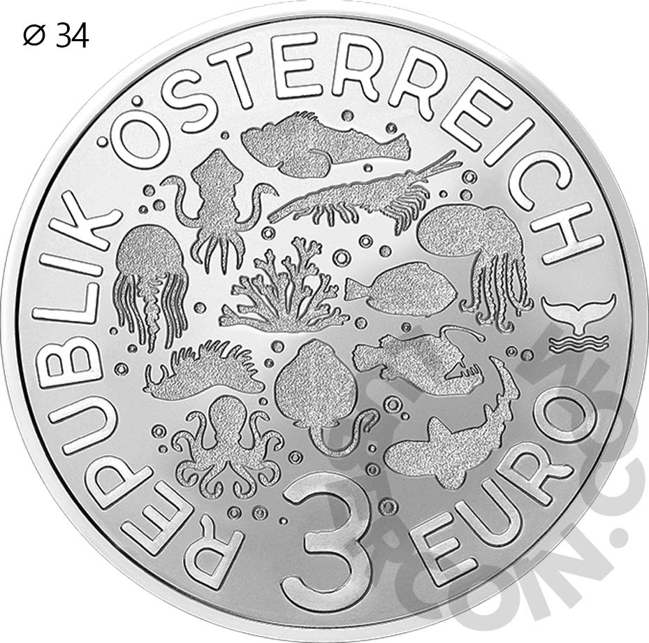 Австрия 3 евро 2025 Рыба-дьявол UNC