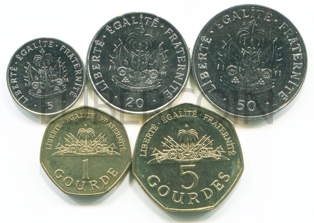 Гаити набор монет 5, 20, 50 сантимов, 1, 5 гурдов (5 монет) UNC
