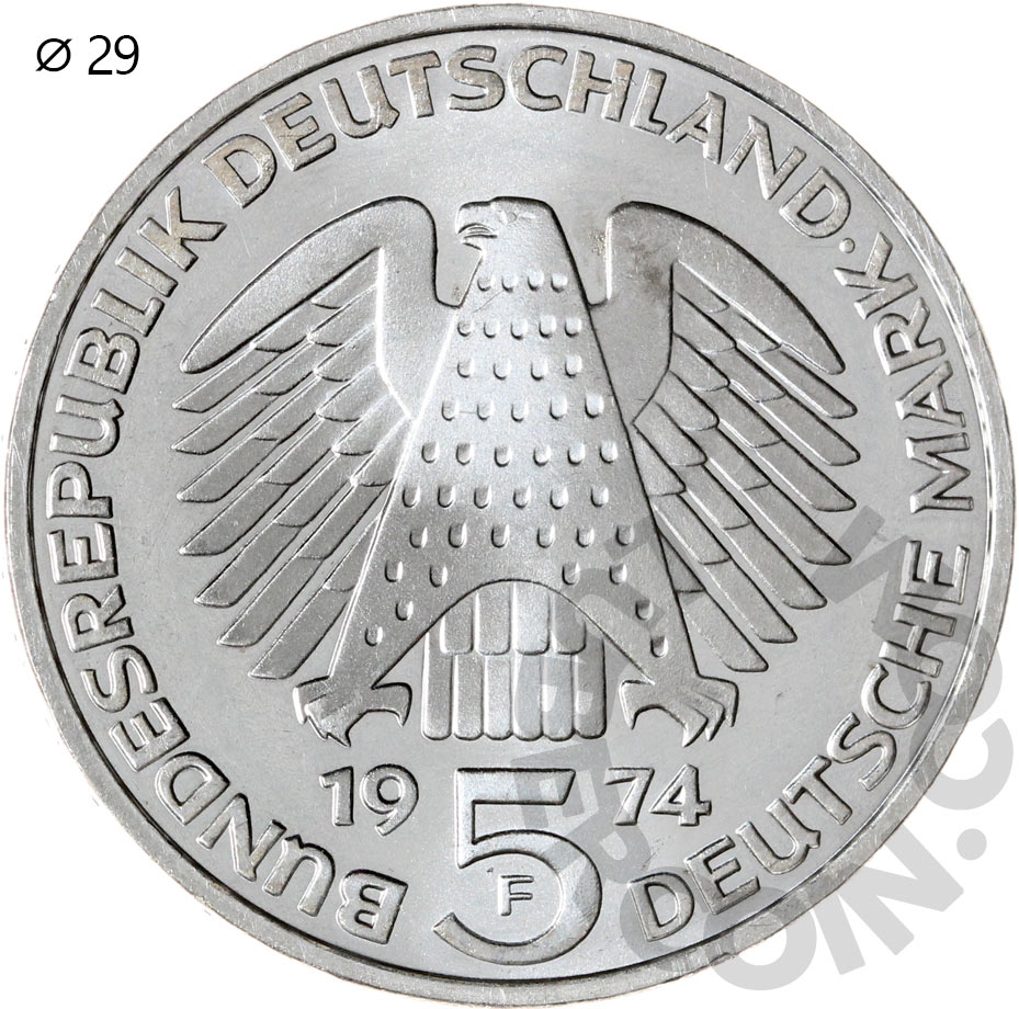 Германия (ФРГ) 5 марок 1974 Основной закон ФРГ. 25 лет со дня принятия F UNC