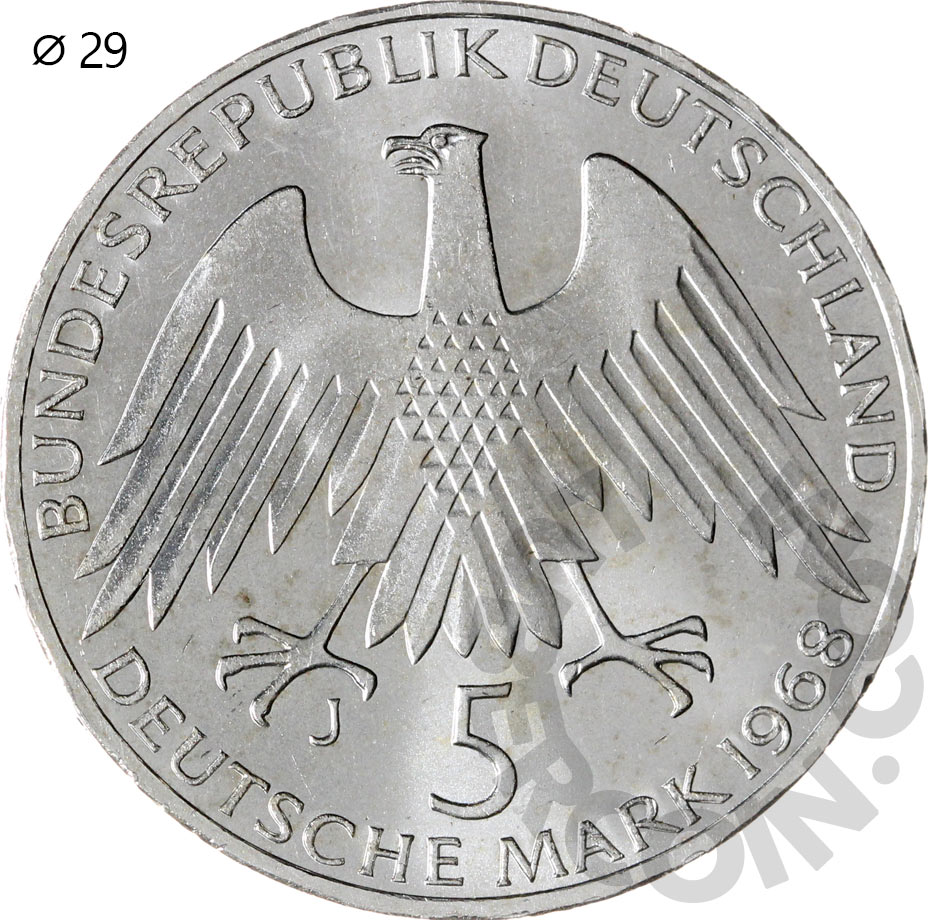 Германия (ФРГ) 5 марок 1968 Фридрих Вильгельм Райффайзен. 150 лет со дня рождения (00045958)