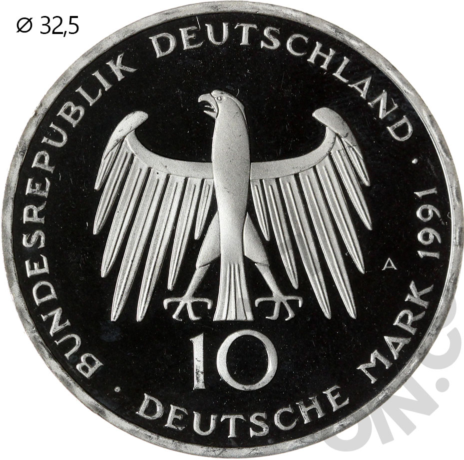 Германия (ФРГ) 10 марок 1991 Объединение Германии A (00046530)