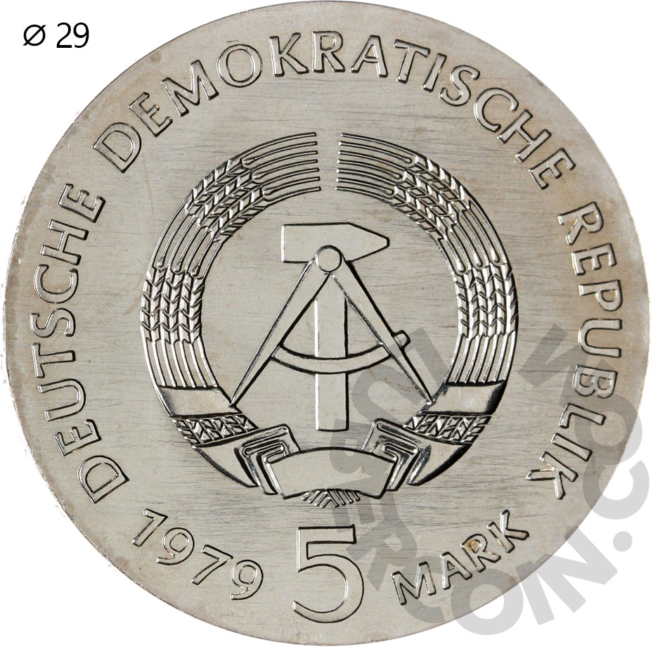 Германия (ГДР) 5 марок 1979 Альберт Эйнштейн. 100 лет со дня рождения UNC