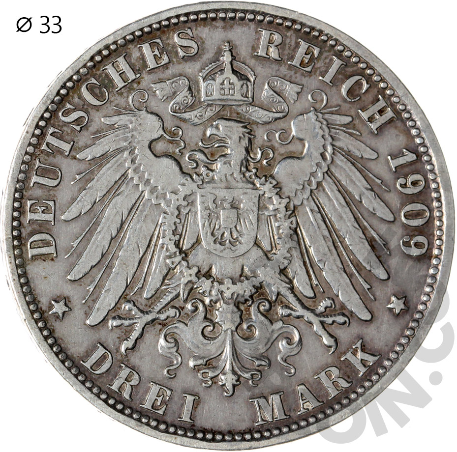 Германия (Бавария) 3 марки 1909 D (00015073)