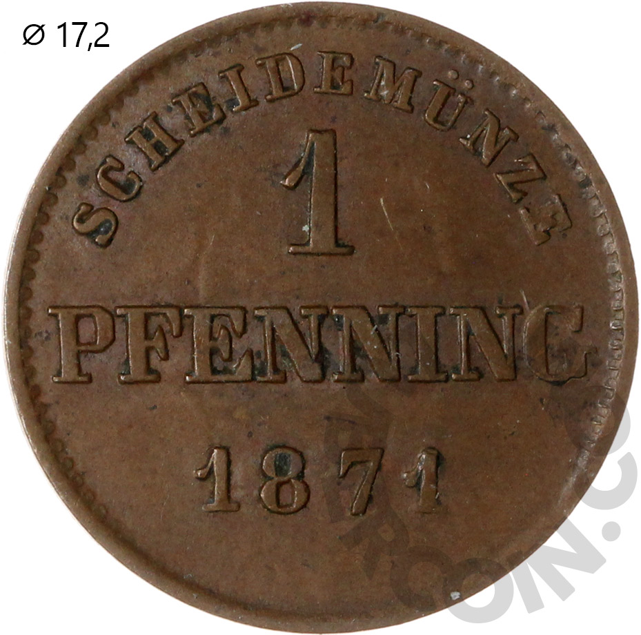 Германия (Бавария) 1 пфенниг 1871