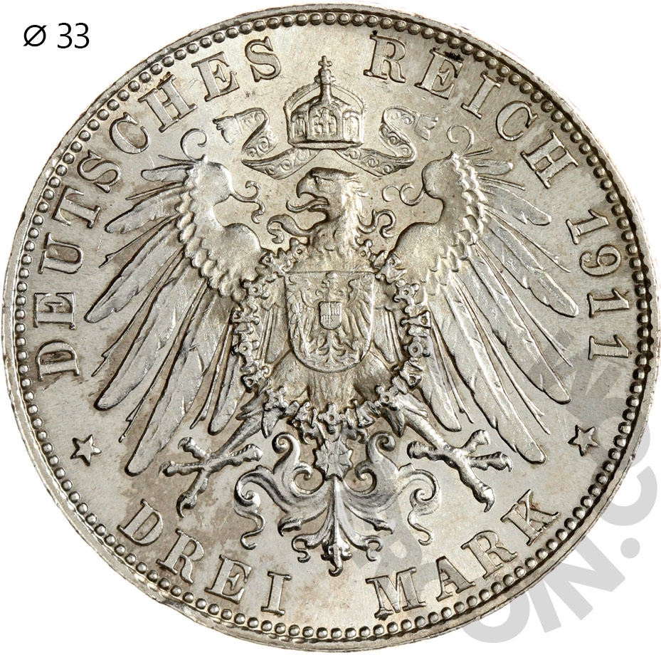 Германия (Бавария) 3 марки 1911 Принц-регент Леопольд. 90 лет со дня рождения (00043560)