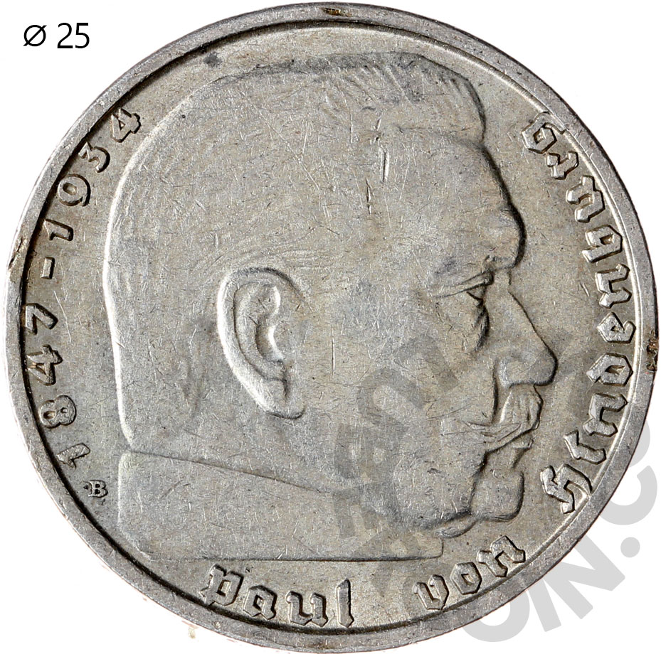 Германия (Третий Рейх) 2 рейхсмарки 1938 B (00043421)