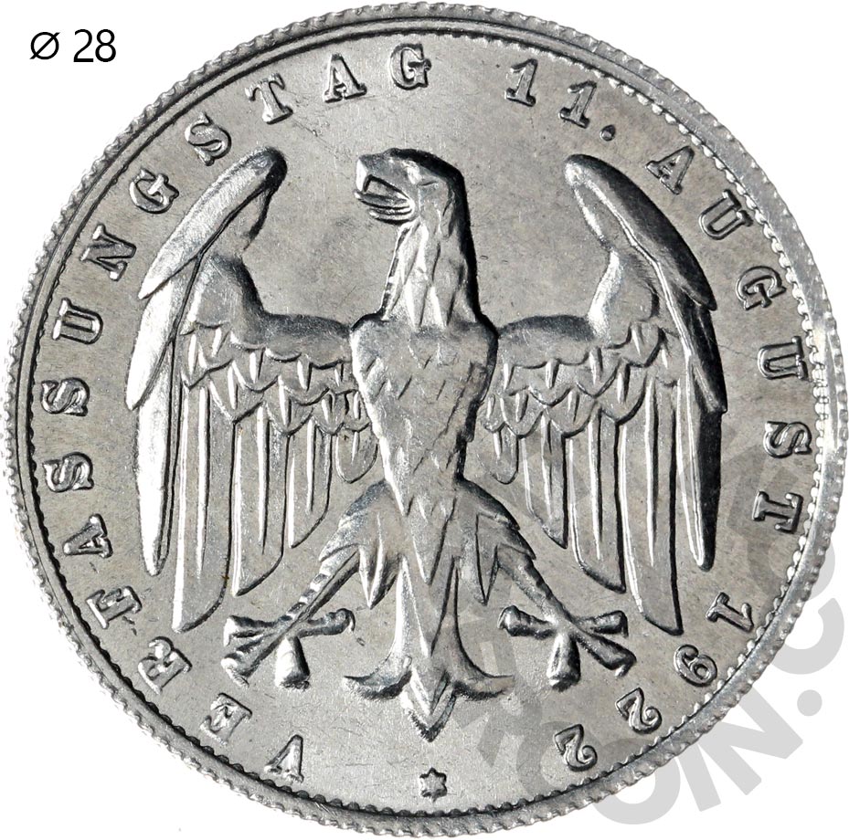 Германия (Веймарская Республика) 3 марки 1922 G Надпись UNC