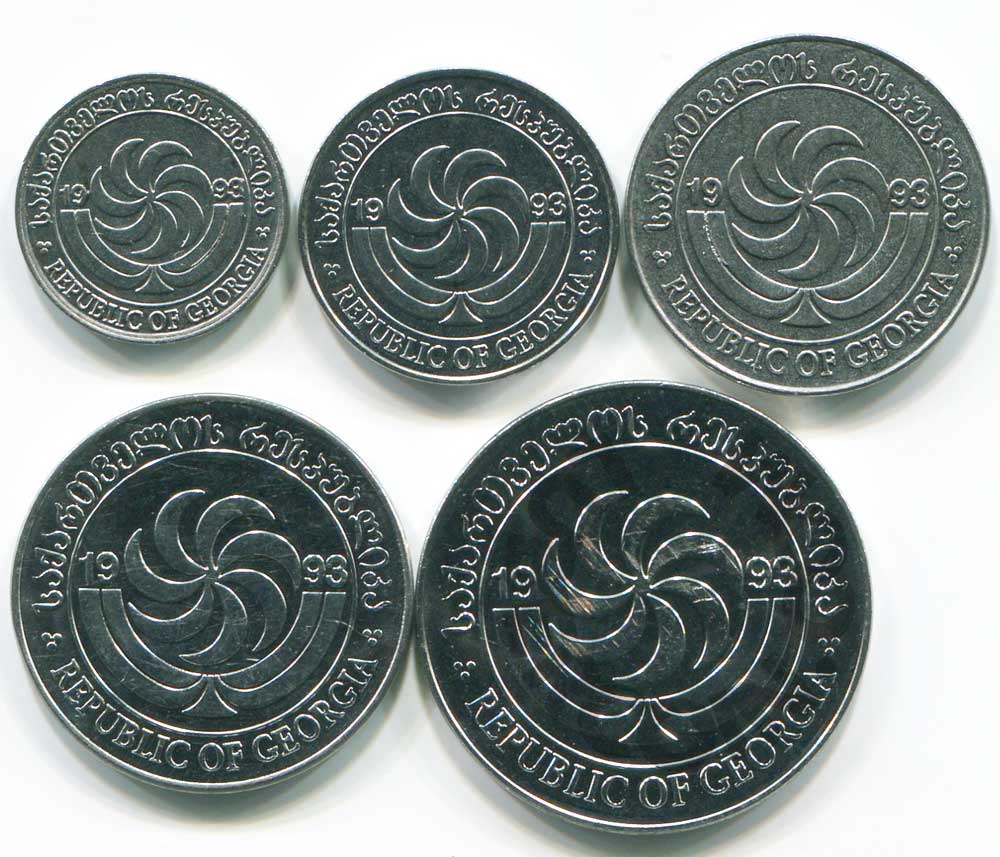 Грузия набор монет 1, 2, 5, 10, 20 тетри 1993 (5 монет)
