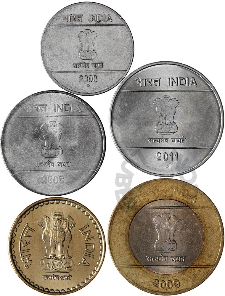 Индия набор монет 50 пайс, 1, 2, 5, 10 рупий (5 монет)