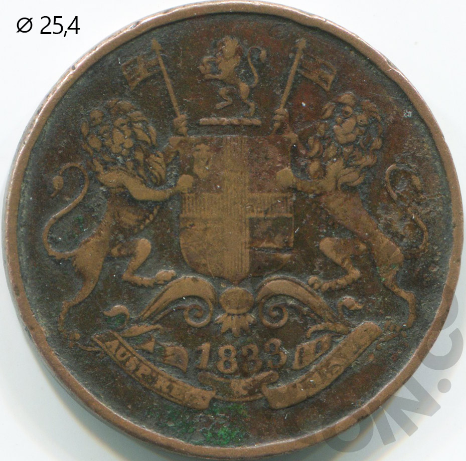 Британская Индия (Бомбей) 1/4 анны 1833 (km#232) (00044477)