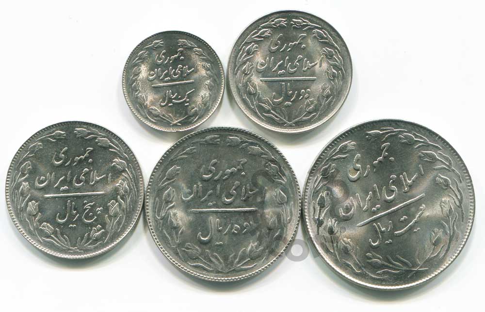 В наборе 5 монет Ирана.
