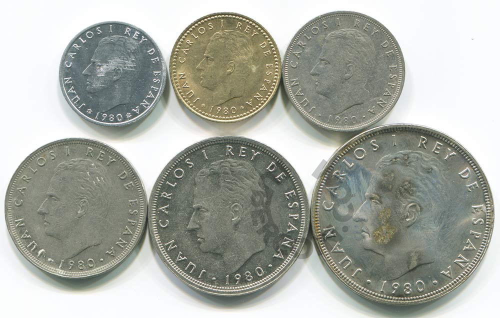 Испания набор монет 50 сентаво, 1, 5, 25, 50, 100 песет 1980 Чемпионат мира по футболу 1982 (6 мон.)