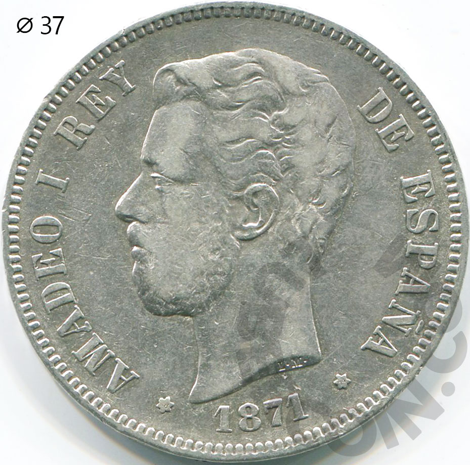 Испания 5 песет 1871 (1874) D•E• •M• (00044370)