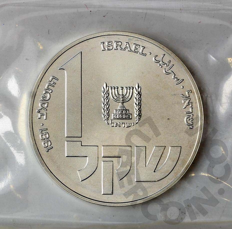 Израиль 1 шекель 1981 Ханука. Лампа из Польши (Монета в запайке) UNC