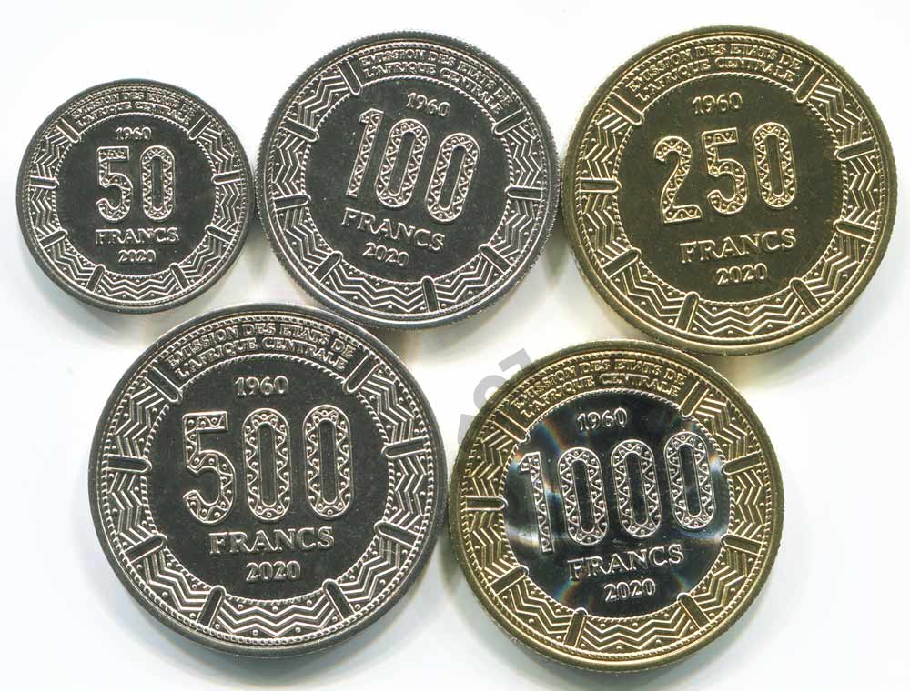 Камерун набор монет 50, 100, 250, 500 и 1000 франков КФА 2020 (5 монет) UNC