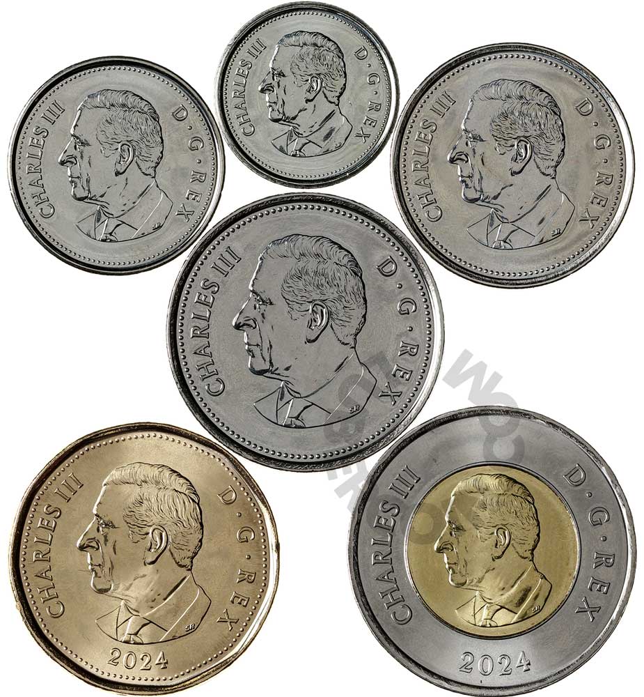 Канада набор монет 5, 10, 25, 50 центов, 1, 2 доллара 2024 Карл III (6 монет) UNC