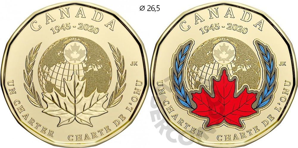 Канада набор монет 1 доллар 2020 ООН. 75 лет со дня основания (2 монеты) UNC