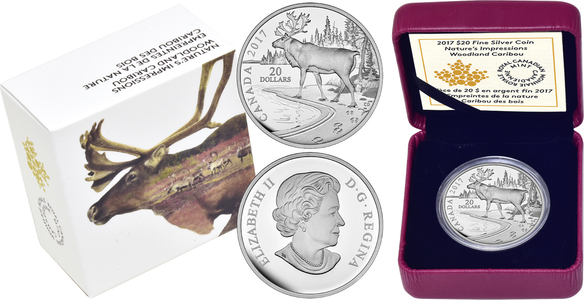 Канада 20 долларов 2017 Лесной карибу / Северный олень (Монета в оригинальной коробке) PROOF