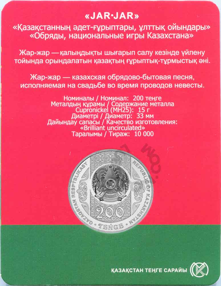 «Жар-жар» — монета Казахстана из серии «Обряды, национальные игры Казахстана»