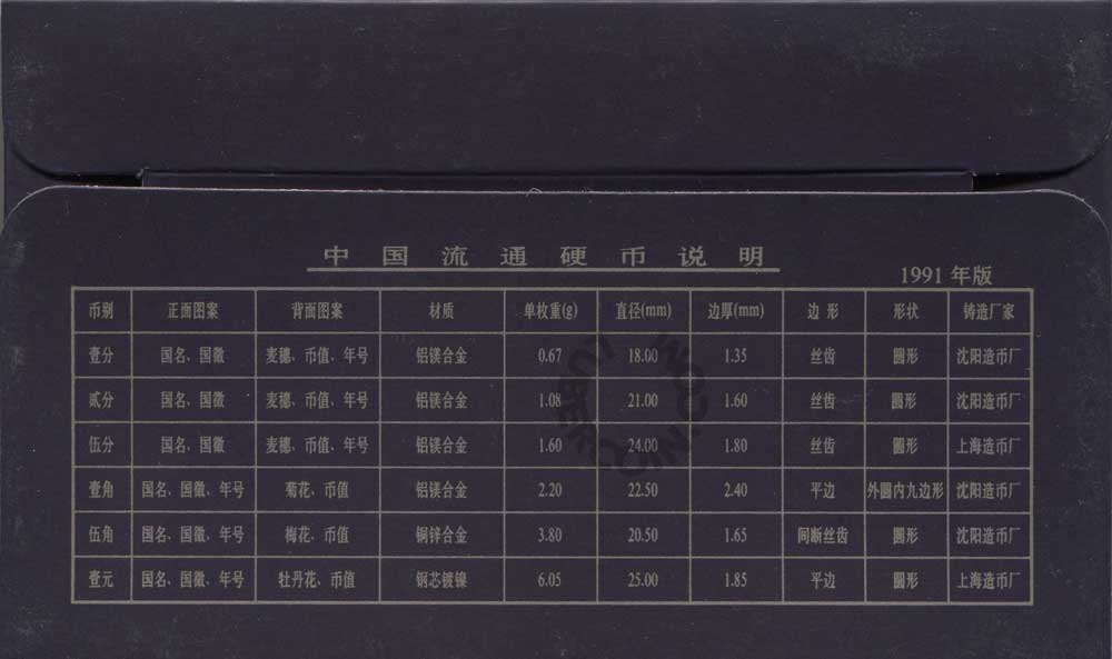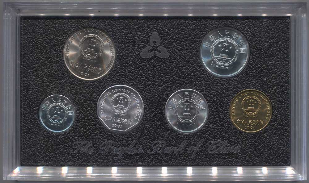 В наборе 6 монет КНР, выпущенные в 1991 году. Это официальный годовой набор монет для обращения.