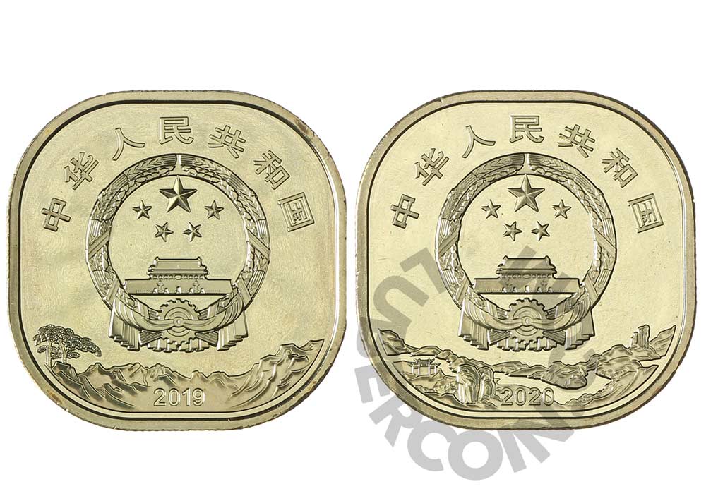 Китай набор монет 5 юаней 2019-2020 Наследие ЮНЕСКО. Священная гора Тайшань и Уишань (2 монеты) UNC